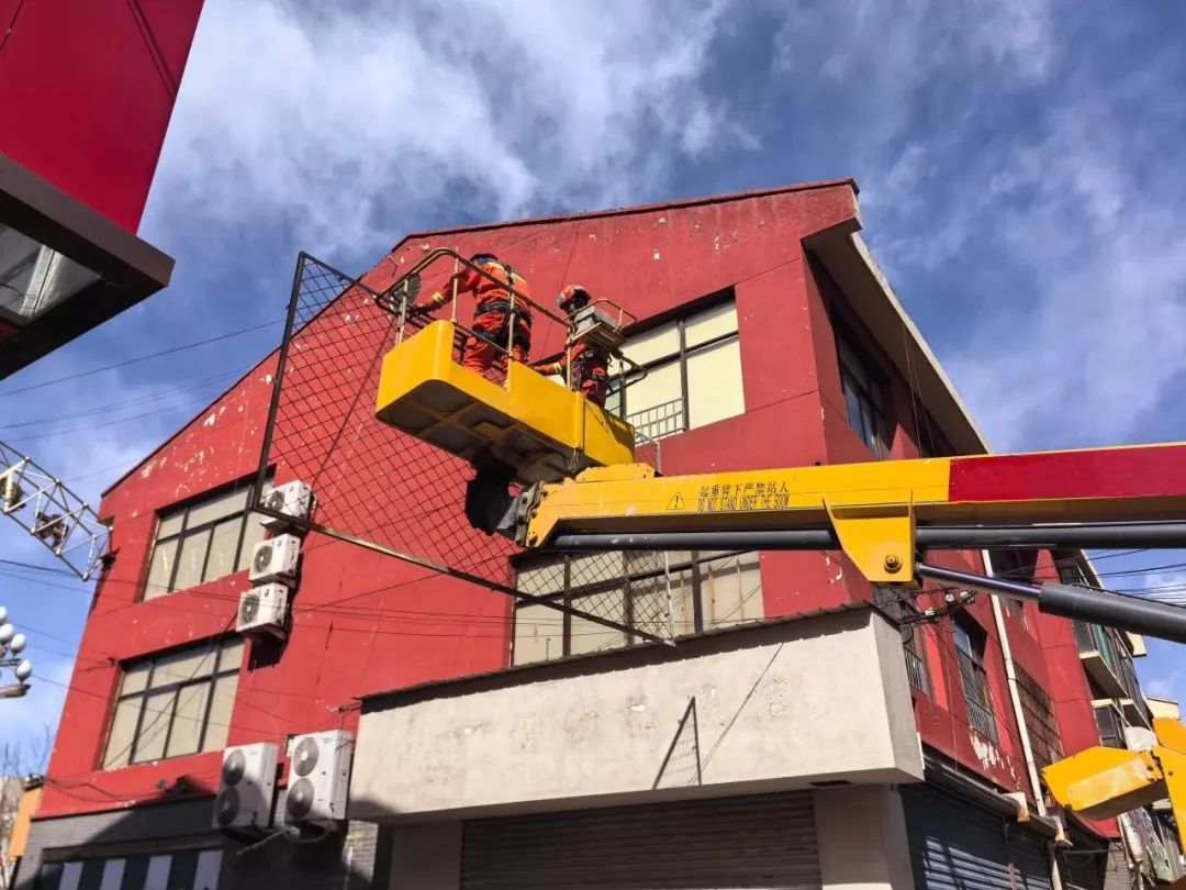 晋中市消防救援支队平遥大队联合城乡建设管理综合行政执法队,对辖区内影响疏散逃生的防盗网和广告牌进行拆除。