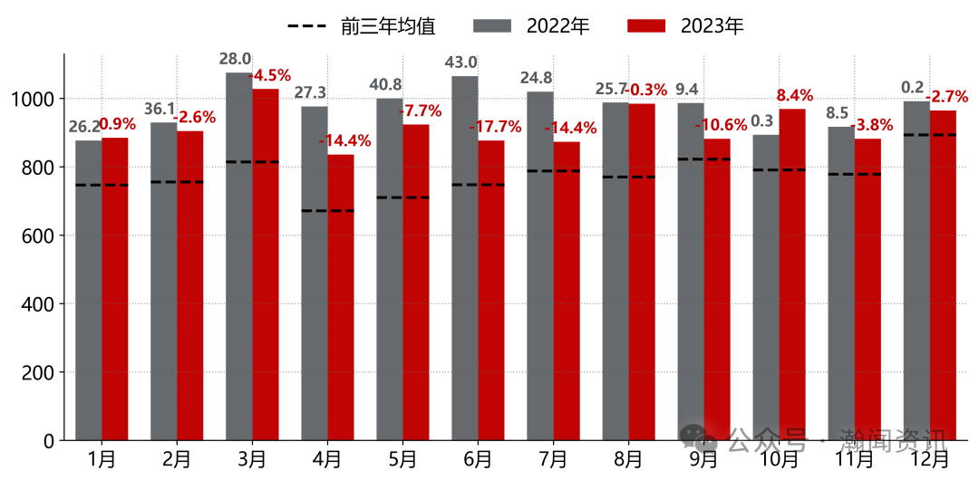 图1 2020-2023年12月印度进出口总值走势(亿美元)