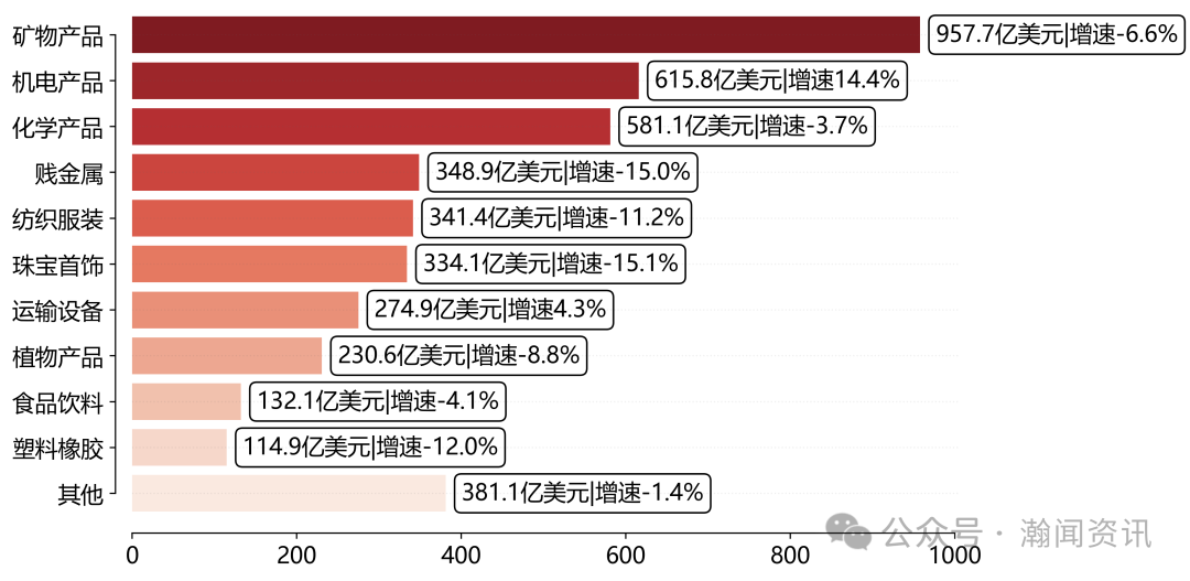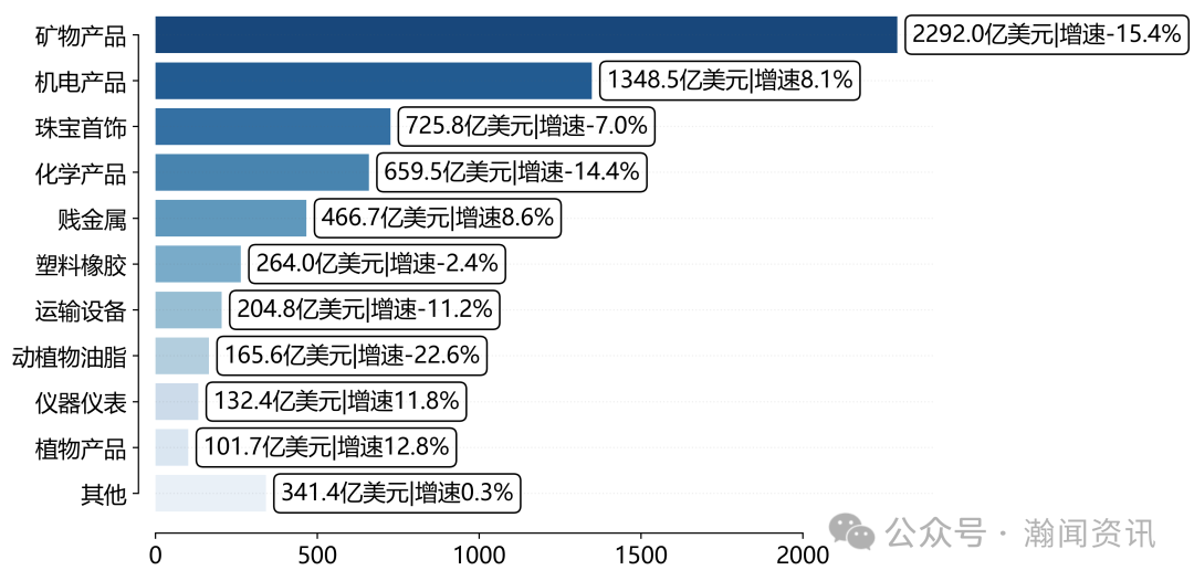 图7 2023年印度自全球进口主要品类(金额和增速)