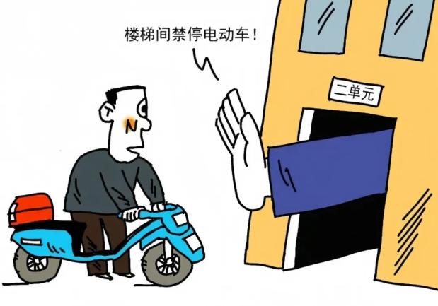 严禁将电动车停放在楼梯间、疏散通道、安全出口处。