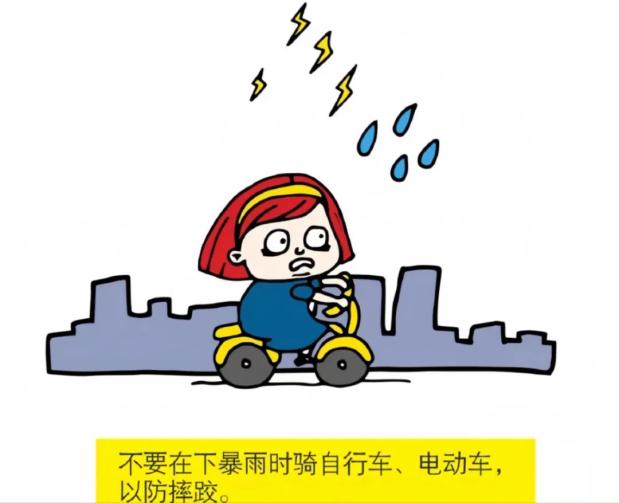 骑车时要注意天气情况,避免在恶劣天气骑行,如雨雪天气。