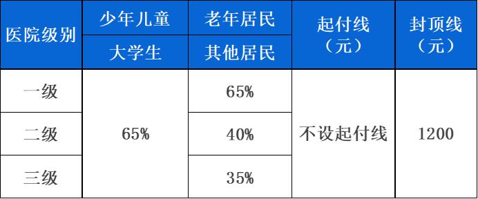 备注:当年度第二次住院起付线标准为第一次的50%,第三次及以上住院均为100元。