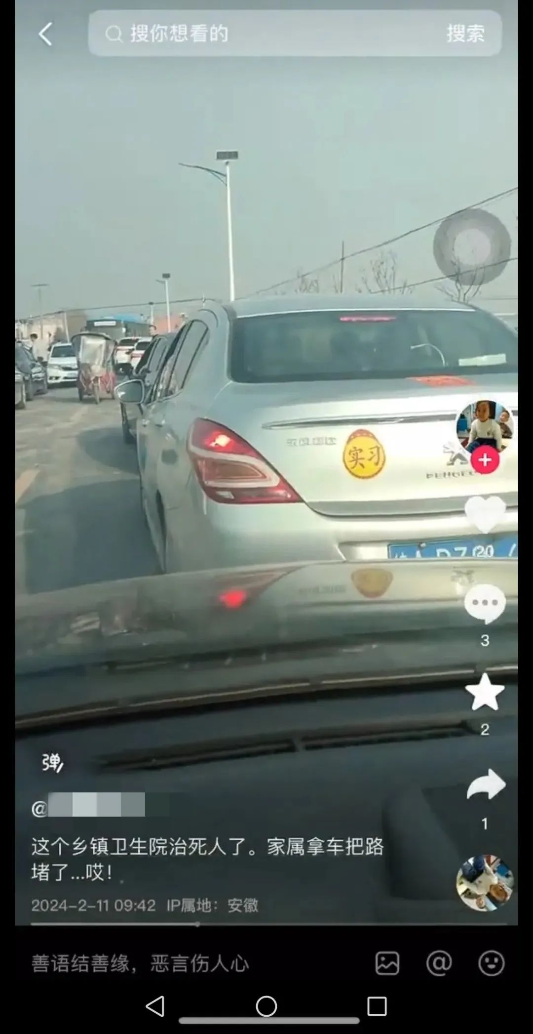 2月11日,网民张某在网络平台编造、发布“肥东某乡镇卫生院治死人,家属拿车堵路”的虚假信息。经核实,张某在过年期间驾车外出遭遇道路拥堵,便将道听途说的不实言论发到网上,造成不良社会影响。