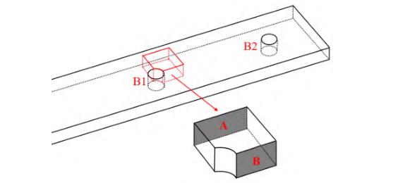图 9 中 A 面和 B 面分别表示试样发生拉伸失效和压缩失效的平面。因两种工况下试样都发生了 B1 螺栓孔侧的静截面拉伸失效,且同种失效模式的微观形貌相同,因此拉伸失效仅以 HBB-ET 试样为例分析失效模式的微观形貌。