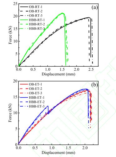 Fig.15 Comparison of load-displacement curves of experiments and simulation under different working conditions:(a)HBB-RT:(b)HBB-ET