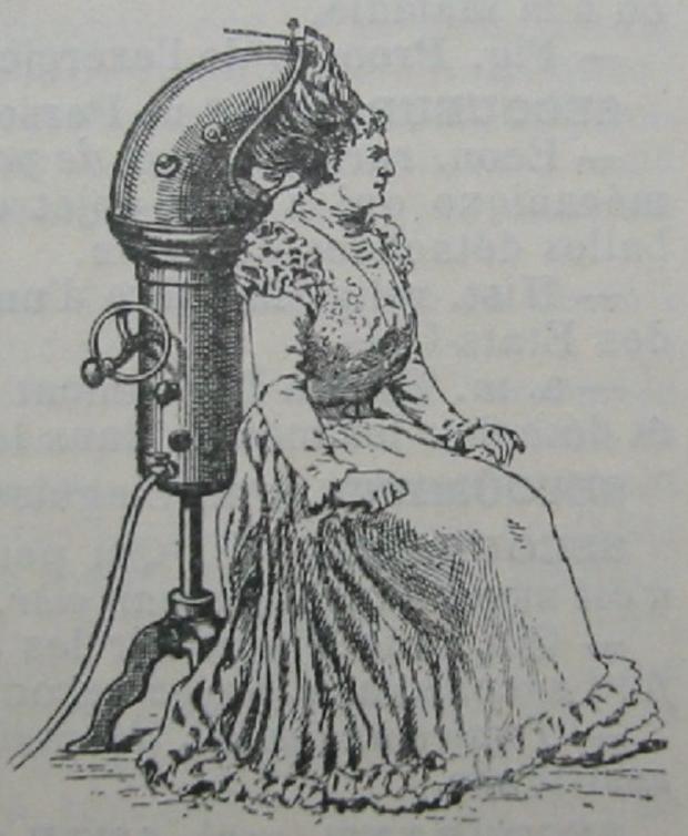 早期在理发店里使用的吹风机,图片来源:Wikipedia