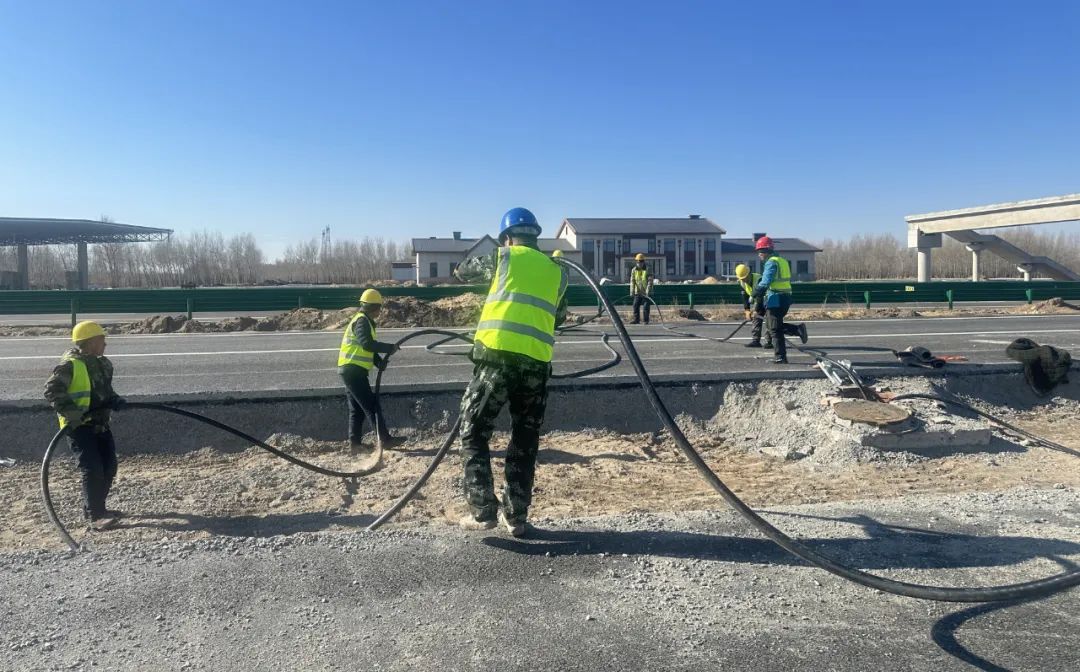 在长太高速公路项目房建标段,同样也是大干特干的繁忙景象。工人们正进行电缆敷设作业,电缆放线主要是依靠人工拉拽,需要工人们齐心协力共同完成,看似简单,做起来并不容易。
