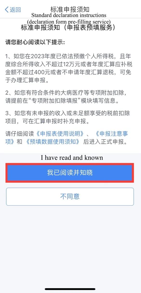 Read the standard declaration instructions (declaration form pre-filling service) and click [I have read and known].