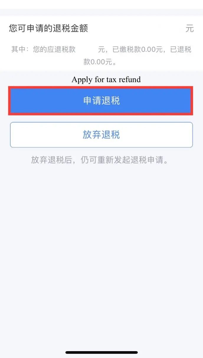 If you have a tax refund, please click [Apply for tax refund].After the approval of the tax authority and the national treasury, the tax refund will be directly returned to your bank account.