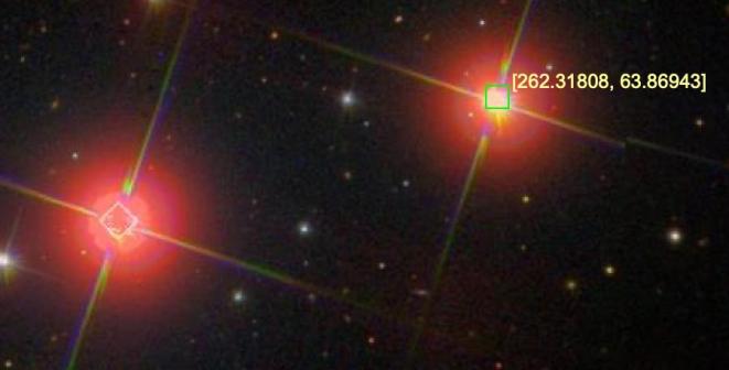 图1. 一对离我们大约150光年、相距约8824 AU的宽距双星。图源:Sloan Digital Sky Survey(SDSS)