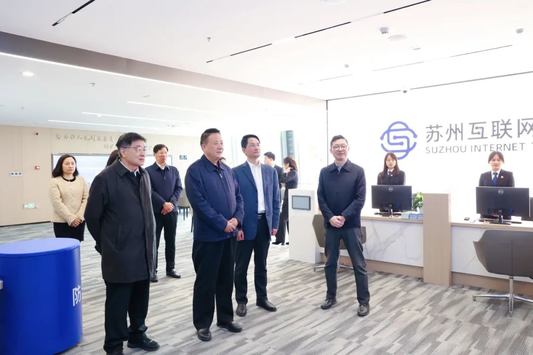 在苏州互联网法庭,调研组一行走进诉讼服务区、审判法庭以及法庭办公区域,认真听取了法庭自去年成立以来在案件办理、互联网诉讼机制创新、人才队伍建设等方面的工作情况介绍。调研组表示,希望苏州互联网法庭继续加强互联网司法经验总结,积极应对新时代网络生态治理、数据要素跨境流通、平台经济发展等新挑战,以科技助审判、以审判树规则、以规则促治理,为构建互联网治理体系贡献更多的司法智慧。