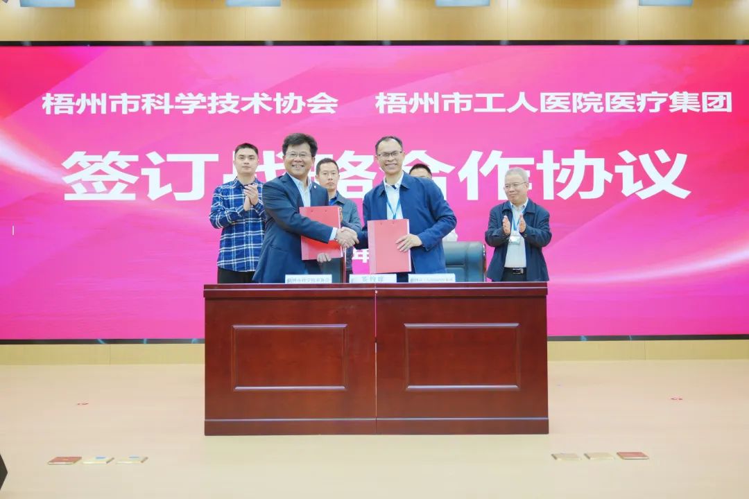 为深入学习贯彻《全民科学素质行动规划纲要(2021—2035年)》及《关于新时代进一步加强科学技术普及工作的意见》,认真贯彻落实上级关于新时代科普工作的新要求,推动梧州市健康科普工作不断取得新成果,3月22日,梧州市科协、梧州市工人医院医疗集团共同举行梧州市健康科普战略合作协议签订及健康科普教育基地揭牌仪式。梧州市科协、市卫健委、市工人医院医疗集团及万秀区科协等相关负责领导出席签约及揭牌仪式。