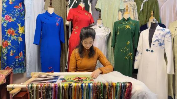 文化背景、理论讲解、实践操作……伍红梅的大课堂让更多人领略了传承与创新的旗袍之美,体验到了非遗文化制作技艺的时代风华。