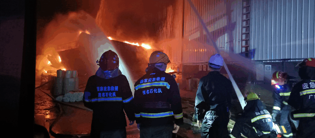 危化救援茂名石化队指挥员根据火场实际情况,立即下达作战指令。凌晨2时10分,明火被扑灭,经反复处置和再三确认,火场无阴燃复燃可能,救援队伍奉命撤回。