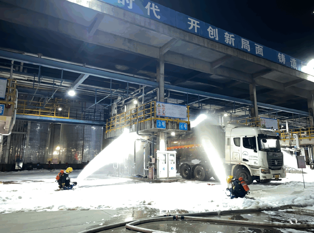 19时19分,高端碳中队救援人员到达现场后得知,闪爆是一辆装油罐车在装白油过程中发生,疑似静电引发,明火被外操人员使用固定炮喷射泡沫扑灭,现场无人员被困,但油罐车仍在冒烟。
