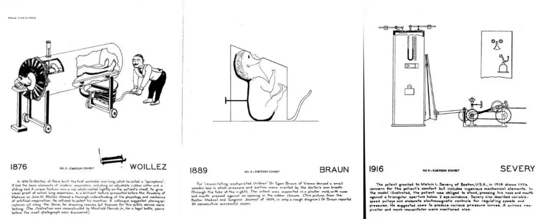 从左到右,分别是Woillez、Braun和Severy的设计图。图片来源The Evolution of Iron Lungs