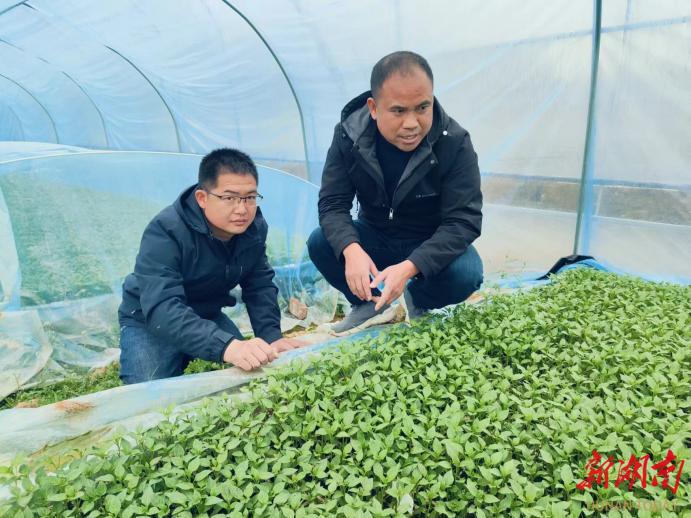 图为省农科院专家指导陈世强种植种苗