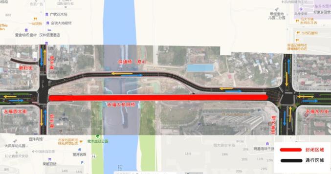 图1:永福大桥保通桥通行线路示意图