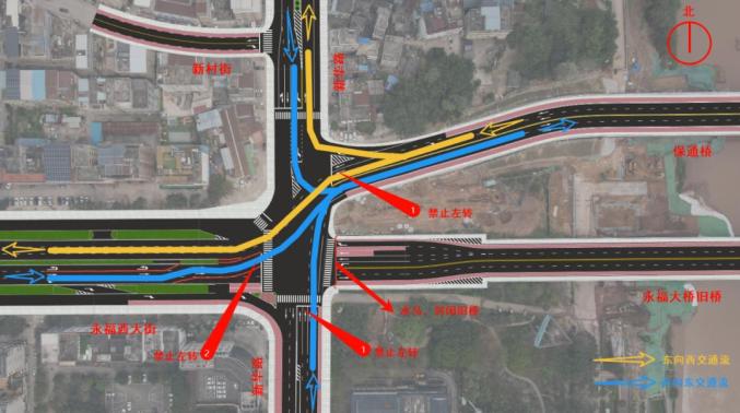 图2:永福大桥东面路口通行线路示意图