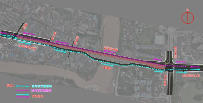 G325钦江大桥保通桥通行线路示意图