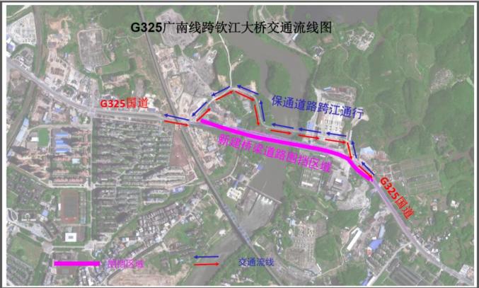 3. G325钦江大桥保通桥通行线路示意图