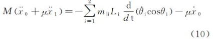 将式(14)代入式(2)(3),化简可得节拍器摆杆摆角满足的二阶微分方程为