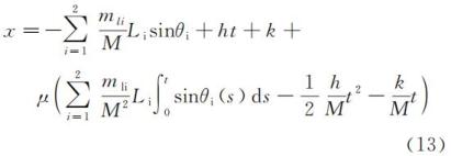联立式(11)和式(12)可得木板的位移与双节拍器摆杆摆角的关系对应的近似解为
