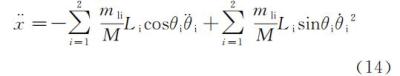 式(13)给出了木板的位移与双节拍器摆杆摆角的关系,因此,将其求二阶导后忽略其中含 μ 的高阶小量项,则木板的加速度可近似表示为