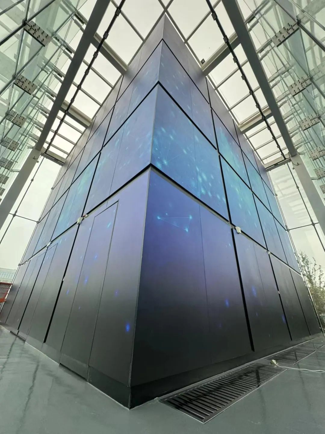 在合肥高新区燕子河路与大龙山路交口,一座长、宽、高均10余米的淡蓝色玻璃立方体格外引人注目,每至夜晚,这座建筑在光影交织中显得更加如梦似幻。这座科技感十足的美丽建筑,便是合肥市打造的“巢湖明月”算力集群一期项目——合肥先进计算中心。
