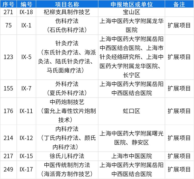 第七批上海市非物质文化遗产代表性名录(传统医药)