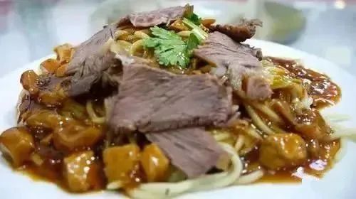 “天上的龙肉,地上的驴肉”是在敦煌美食界非常流行的一句话。敦煌名吃——驴肉黄面,在全国美食界享有盛名,号称中华一绝,是游客到敦煌旅行必吃的美食。驴肉黄面的浇头多采用香菇末、驴肉丁和小豆腐等材料做成的臊子,搭配口感筋道的黄面,营养又美味。