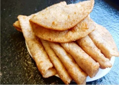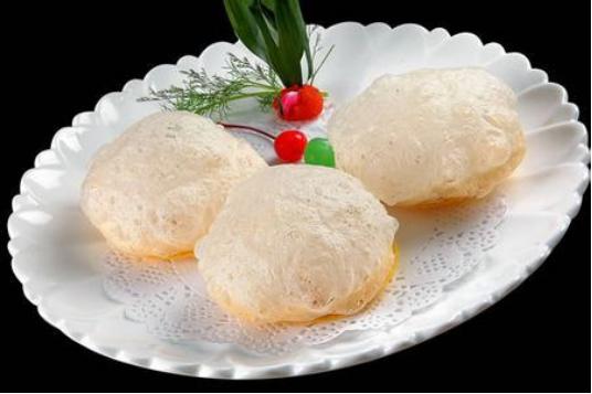 敦煌文书平康乡官斋藉中即有“鎚子头”的记载,鎚子又叫鎚饼,糖鎚就是我们今天所称的“糖油糕”,在敦煌至少有1200多年以上的历史了。20世纪80年代,敦煌宾馆经过挖掘创新,制作出风味独特的“泡儿油糕”。“泡儿油糕”放入油锅煎炸时,油糕一面的表皮会隆起一个个“泡儿”,酥松亮透,十分好看,使油糕的外形更加美观。泡儿油糕色泽黄亮、松如轻纱,表皮蓬松,有如密密麻麻的珍珠小泡,脆酥如飞絮,脆酥如飞絮,吃起来香甜如糯,蜜汁如饯。