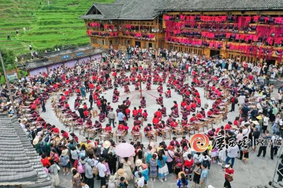 每年农历六月初六的“晒衣节”,当地瑶族妇女会将服饰拿出来晾晒,意在杀毒灭菌去晦。这一天,满寨子都是红衣裳,抬头望去,满眼是红,连片的红装像是一片绚丽的火烧云,尤为壮观。