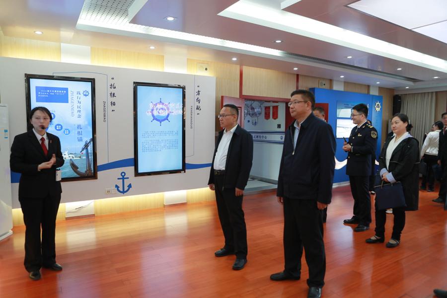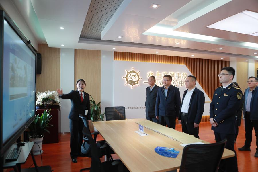 李革胜副院长一行实地参观南京海事法院与南京海事局联合成立的“水上交通事故一站式解纷中心”,认真听取了“一站式解纷中心”在联动机制、功能布局、经验成果等方面的情况介绍,深入学习南京海事法院在融合行政司法、做实为民服务、促进航运高质量发展方面的成功经验。参观了上海海事法院诉讼服务中心、扫描阅卷中心、文化展示厅、图书馆等场所,听取了该院在实施海事审判精品战略、服务保障航运经济发展、智慧法院建设等方面的经验做法,实地体验科技感与人文关怀十足的海事法院“样板间”。