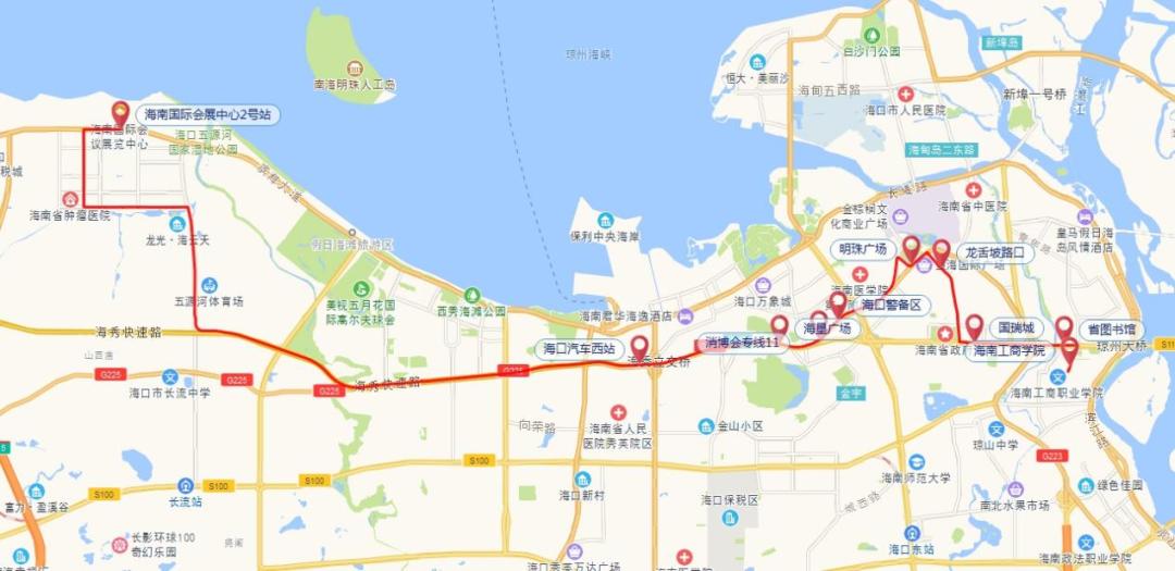 返程➡海南国际会展中心2号站(中间通道)、永秀花园、高铁秀英站、海口市烟草局、丘海路口、保税区、京江花园、高铁城西站、坡巷村、海师大龙昆南校区、山高村口、琼山侨中、绿色佳园