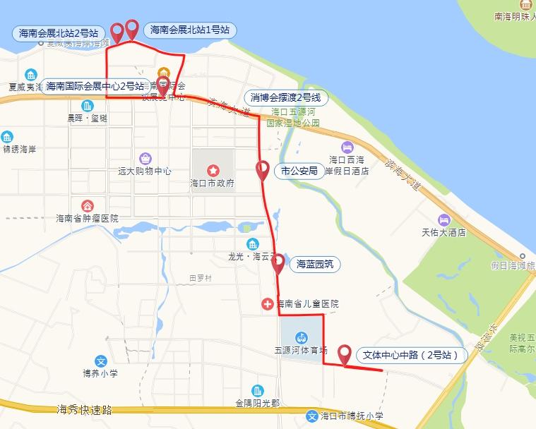 文体中心中路(1号站)、亚特酒店、市政府西门、富地国际、华府蓝湾北门(远大购物广场)、海南国际会展中心2号站(最内侧通道)