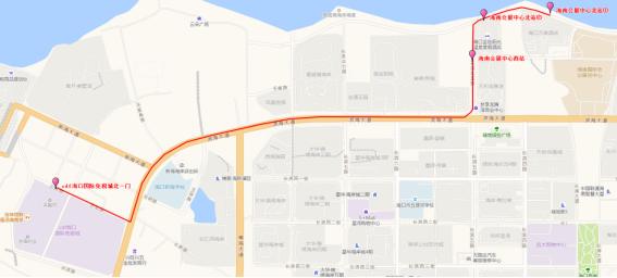 返程➡海南国际会展中心2号站(中间通道)、黄金海岸酒店、新国宾馆、贵族游艇、南光西海湾、杜鹃小区、龙华区税务局、万绿园、海大北门、星光海岸、燕泰酒店、星海湾铂尔曼酒店、横沟二街路口、滨海国际