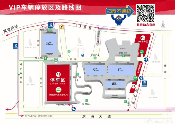 2.离开海南国际会展中心:12条公交专线、2条公交免费接驳线均停靠滨海大道南侧的“海南国际会展中心2号站”。