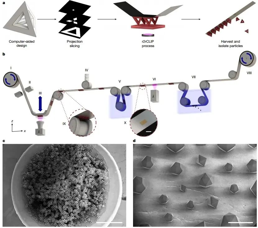 图1 r2rCLIP是具有复杂几何形状的粒子的快速制造工艺