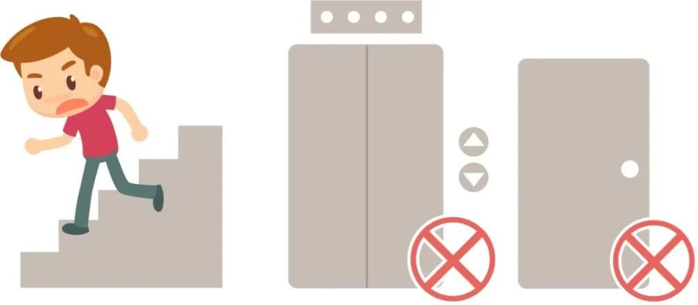 3、不要乘坐或躲到电梯里。不要跟随人群向楼下拥挤逃生。