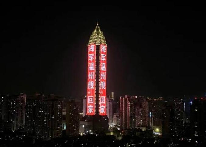 4月18日晚上8点30分,温州市民惊喜地看到户外屏亮起了“欢迎海军温州舰‘回家’”!