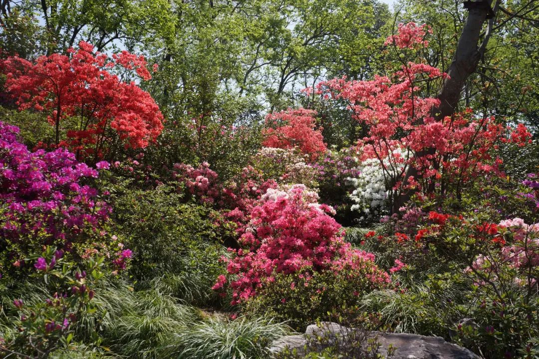 映山红能够适应上海地区的气候条件,但是对土壤碱性比较敏感,栽培时需要做好土壤改良才能达到花繁色艳的效果。上海植物园引种栽培映山红多年,杜鹃园内栽培展示了不同花色、不同花期的映山红,同时杜鹃花项目组开展了映山红适应性筛选和改良,利用选择培育的单株在杜鹃园打造了一处映山红小山坡,近期正在花期,市民可就近欣赏映山红的山花烂漫。