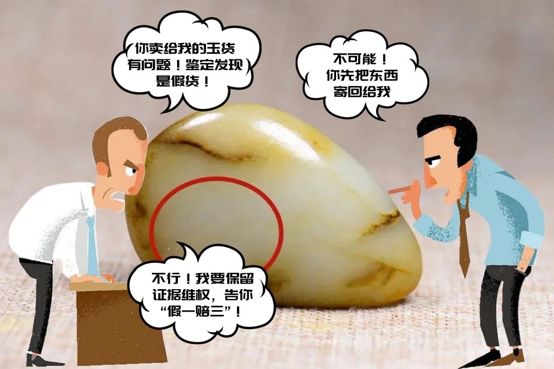 提示原告方:首先其在被告处购买的玉货绝大部分用于二次销售,并非真正意义上的“消费者”,本案能否绝对适用“消法”三倍赔偿有待进一步甄别;其次在被告表示愿意“退款退货”情况下,原告称为“保全证据”执意不予退货,对于两年多来多次维权而扩大的经济损失应当负有责任,不能一概要求被告“赔偿”;最后原告仅对其中一件价值3万余元的玉石进行了鉴定,则原告仅能针对该玉石主张权利。