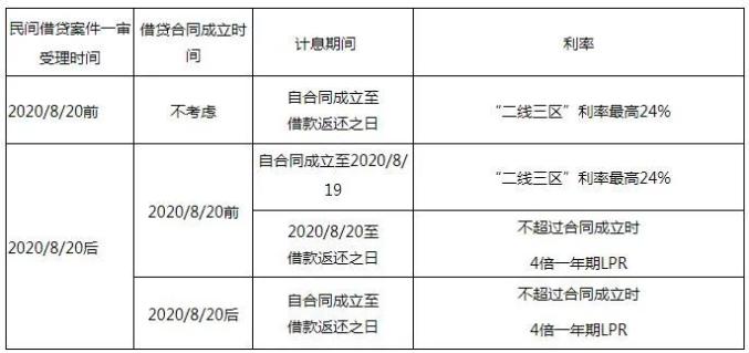 法释〔2020〕17号第三十一条规定:本规定施行后,人民法院新受理的一审民间借贷纠纷案件,适用本规定。2020年8月20日之后新受理的一审民间借贷案件,借贷合同成立于2020年8月20日之前,当事人请求适用当时的司法解释计算自合同成立到2020年819日的利息部分的,人民法院应予支持;对于自2020年8月20日到借款返还之日的利息部分,适用起诉时本规定的利率保护标准计算。 本规定施行后,最高人民法院以前作出的相关司法解释与本规定不一致的,以本规定为准。