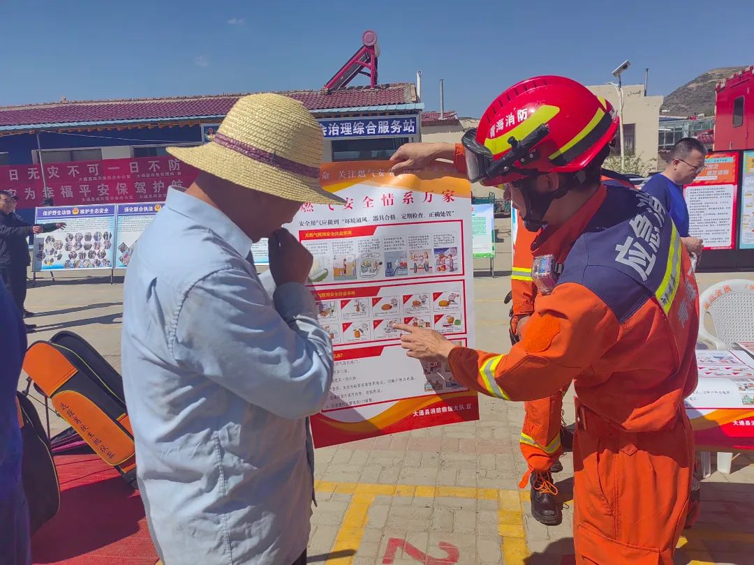 大通县消防救援大队在良教乡下治泉村广场通过设置咨询台、摆放展板、发放资料、消防器械装备展示及消防宣传车播放防火安全知识等方式,让广大群众更好地学习和掌握消防知识和技能,消防宣传人员向群众发放《农村消防宣传手册》《家庭消防知识手册》等宣传资料,并热心解答了家庭防灭火、自救逃生、电动车使用等常识,加强了人民群众在日常生活中防范火灾的意识。