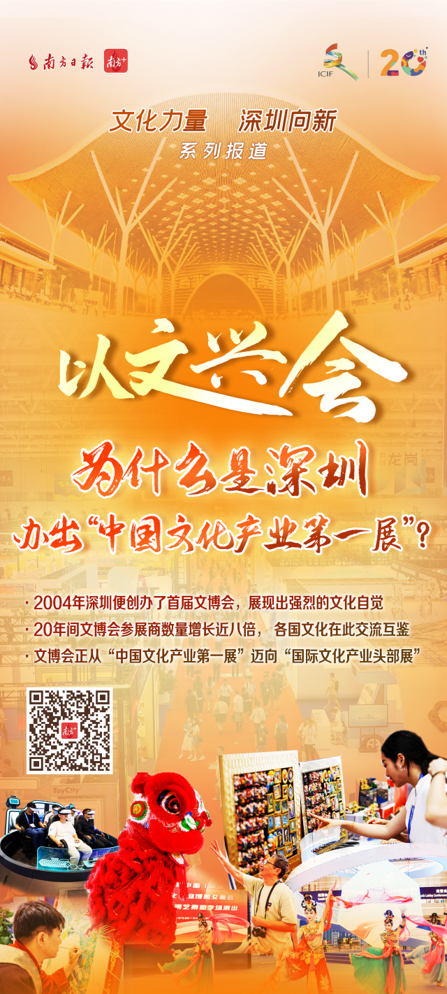 2004年,深圳便创办了首届文博会,展现出强烈的文化自觉。20年间,昔日诞生于深圳的地方性市级展会,已发展成为辐射全国、走向世界的“中国文化产业第一展”。