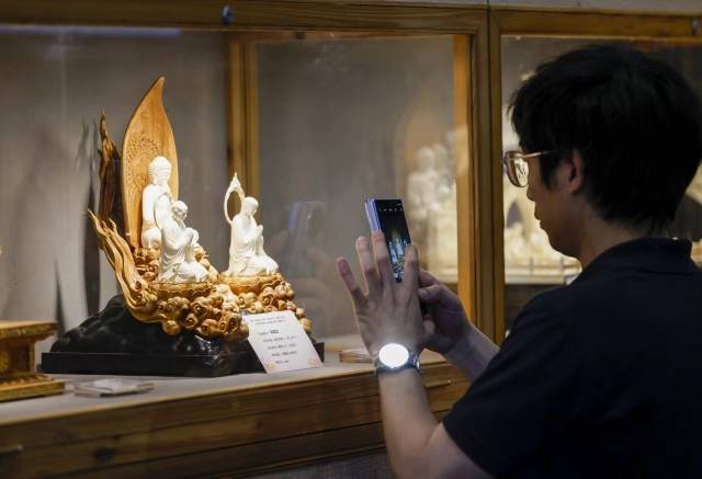 贵州馆里古法扎染“布里生花”,江苏馆里绣娘飞针走线;哈尔滨带来“冰城创意”,将冰天雪地景色浓缩于瓷板、珐琅方寸之间;“好客山东”齐鲁文化市集带来一批淄博陶琉、临沂柳编、菏泽汉服等手造精品......