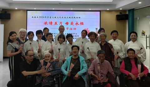 5月9日,大堰湾社区开展“浓情五月 母爱永恒”主题活动。活动现场,特邀云林花园王师傅与八十五高寿母亲共舞《有生之恋》,为母亲节活动献舞一曲,随后邀请风尚学校的专业护肤老师为在场的母亲们教授护肤和妆容课程。现场的妈妈们边听边讨论认真观察着老师展示的化妆动作。此次活动不仅丰富了社区女性居民的日常生活,同时营造了幸福欢乐的社区氛围,将爱传递到社区每个角落。