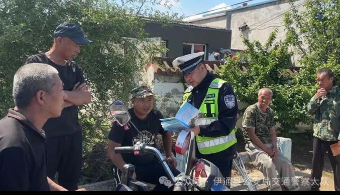 6月10日,伊通县公安局交警大队组织民警深入辖区营城子镇向前村开展端午节交通安全宣传活动。