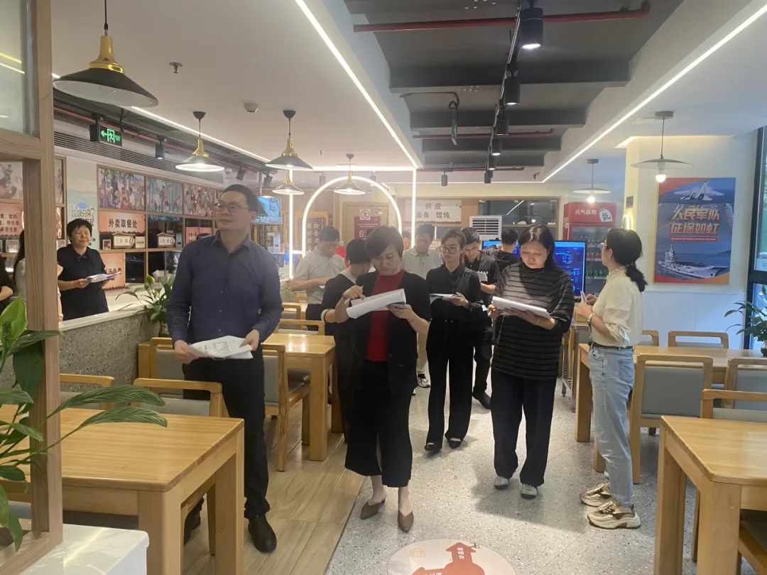 检查过程中,市场监管所一行听取了食堂负责人对食堂基本情况的介绍,现场查看了长者食堂是否建立健全食品安全责任制,从业人员健康证明是否有效、是否持证上岗,用餐环境是否整洁卫生,原料的购置、储存、加工制作等流程是否规范、安全,厨具清洗和消毒工作是否到位,食品留样是否符合规范要求,食品原料采购索证索票、进货查验制度是否落实等各项细节。同时,市场监管所还要求长者食堂对供货商的资质及所供食材要严格把关,确保食品采购渠道正规可追溯,来往票证和工作台账规范齐全,食品原材料经过检验并符合要求。当天下午,由区民政局组织的2024年度长宁区第一场社区长者食堂服务质量监测现场指导会也在仙霞社区长者食堂召开。上海市服务质量监测培训专家对照指标逐一讲解,现场提出问题并给出整改意见,对长者食堂落实食品安全主体责任进行解读,要求企业建立健全食品安全管理制度、落实食品安全管理人员岗位职责制。